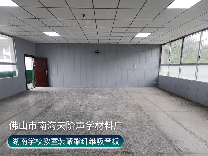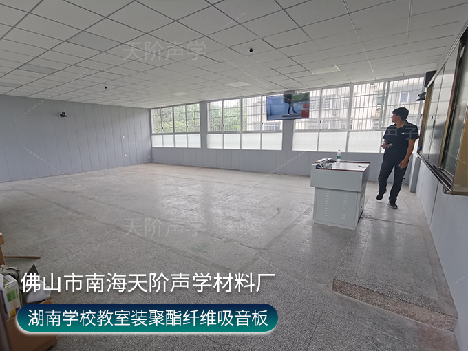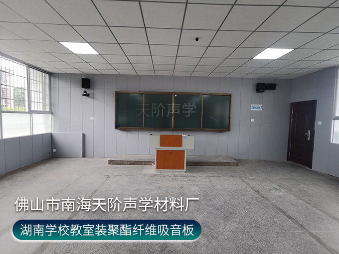 湖南學校教室項目,選用實用又實惠的聚酯纖維吸音板,空隙吸音降噪,有彈力能卸掉大部分撞擊力,做不燃處理,安全安心非常適合人員密集的學校教室。