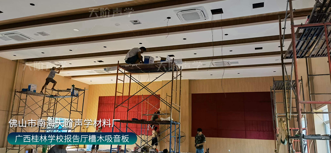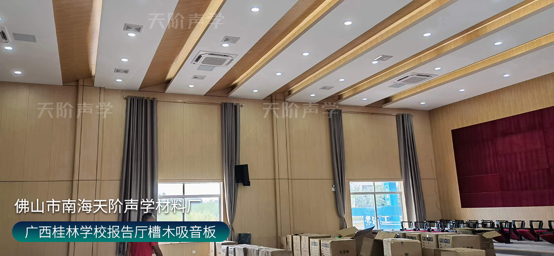 廣西桂林學(xué)校報(bào)告廳安裝吸音板效果圖