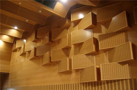 對于家裝而言,大都采用木質吸音板。它是根據聲學原理精致加工而成,由飾面芯材和吸音薄氈組成。木質吸音板分為槽木吸音板和孔木吸音板兩種。一般來說,家里所用的木質吸音板主要以孔木吸音板為主,它是通過材料內部的大量微小連通的孔隙,將聲波沿著這些孔隙深入材料內部,與材料發生摩擦作用將聲能轉化為熱能,從而達到薄板共振吸聲,也因此通過薄板劇烈振動而大量吸收聲能,同時隨著頻率的增高吸聲系數逐漸增大,也就是高頻吸收要好于低頻吸收,最終達到吸音要求,此外還也能改善音質質量,提高語音清晰度。