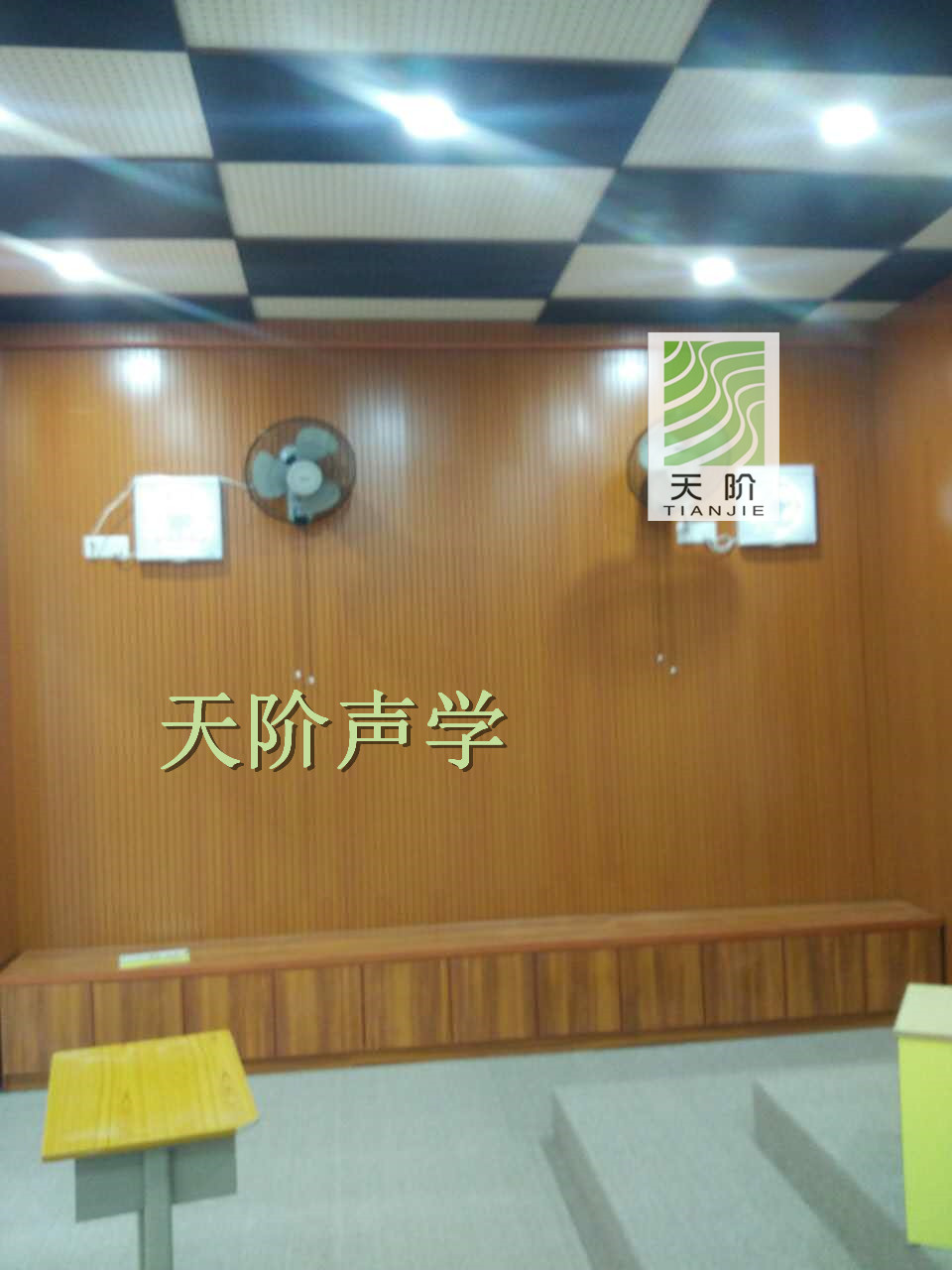 東莞市南城區小學多功能室采用了我們天階牌的槽木吸音板400方,孔木吸音板吸音板600。多功能室四周運用了紅櫻桃槽木吸音板作為墻面,同時還運用了兩種規格的黑白間隔的孔木吸音板。這樣搭配起來讓多功能室更加的好看。為了讓同學們有個更安靜更舒適的環境,學校還在天花板上裝了黑白間隔的孔木吸音板。這讓多功能室沒有了雜亂的回聲,也更生氣。