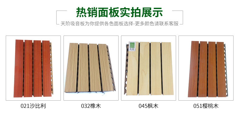 穿孔木質(zhì)吸音板基材和飾面選擇很多,詳情致電天階聲學(xué),可免費索取拿樣板:18824825697