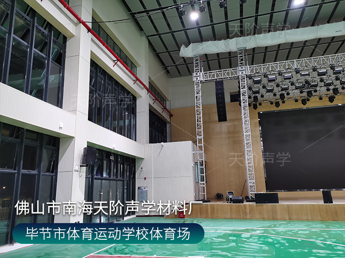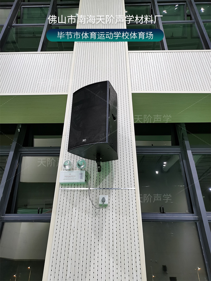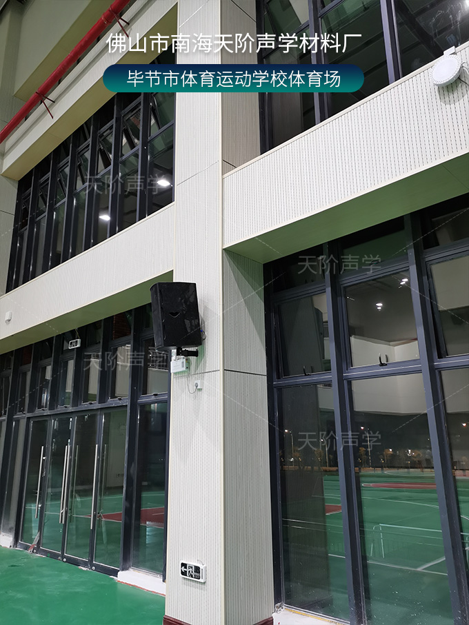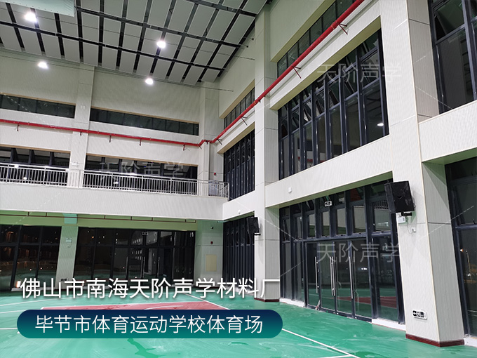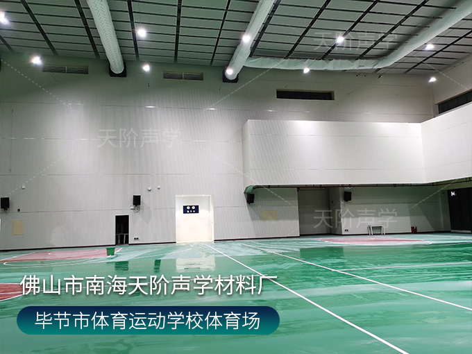 畢節市體育運動學校體育場項目改造中,使用平板吊頂空間吸聲體用頂部吸音裝飾;墻面選用白色飾面