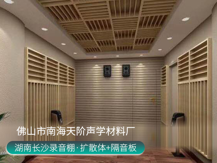 錄音棚:墻面槽木吸音板+天花微孔吸音...