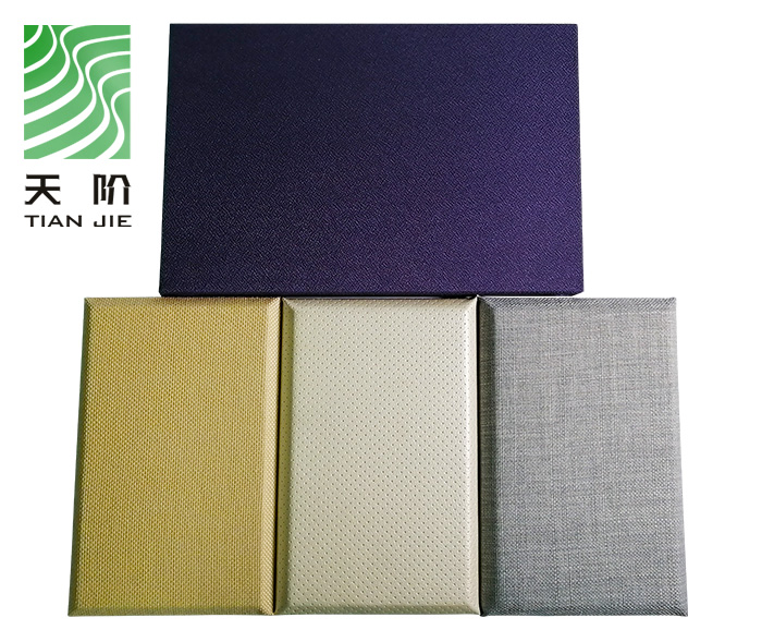 天階聲學布藝吸聲板采用高質的96kg/m3玻璃吸音棉。具有環保、阻燃、吸聲頻帶寬、裝飾性強、施工簡單、無粉塵污染等性能,飾面顏色及材料選擇性廣,能很好地滿足客戶多樣化的聲學及裝飾需求。