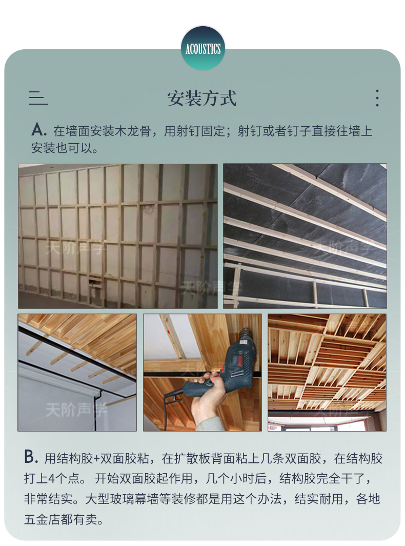 家裝場(chǎng)所:電視背景,床頭背景,大廳吸聲裝飾等。