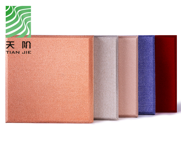 天階聲學布藝吸聲板采用高質的96kg/m3玻璃吸音棉。具有環保、阻燃、吸聲頻帶寬、裝飾性強、施工簡單、無粉塵污染等性能,飾面顏色及材料選擇性廣,能很好地滿足客戶多樣化的聲學及裝飾需求。