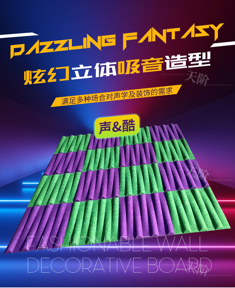 3D聚酯纖維吸音板是今年新研發(fā)產(chǎn)品,采用的是綠色環(huán)保高新技術(shù)熱壓合成繭棉形狀的纖維板材,具有環(huán)保,防火,吸音,3D效果裝飾性更立體,易安裝等功能。