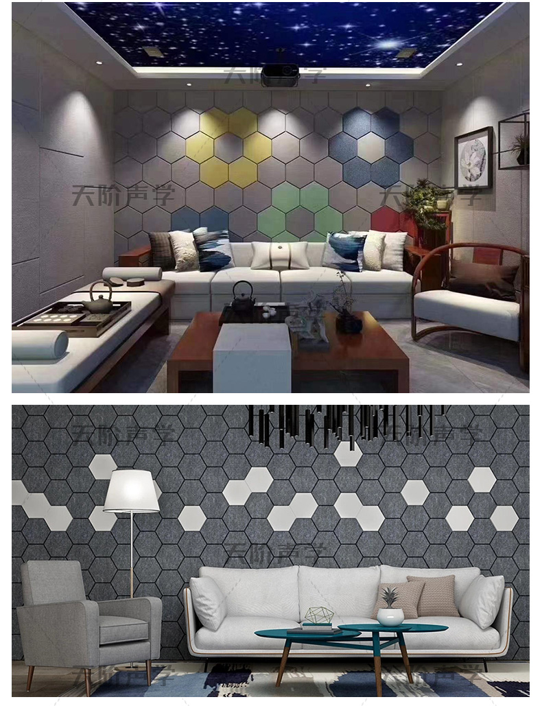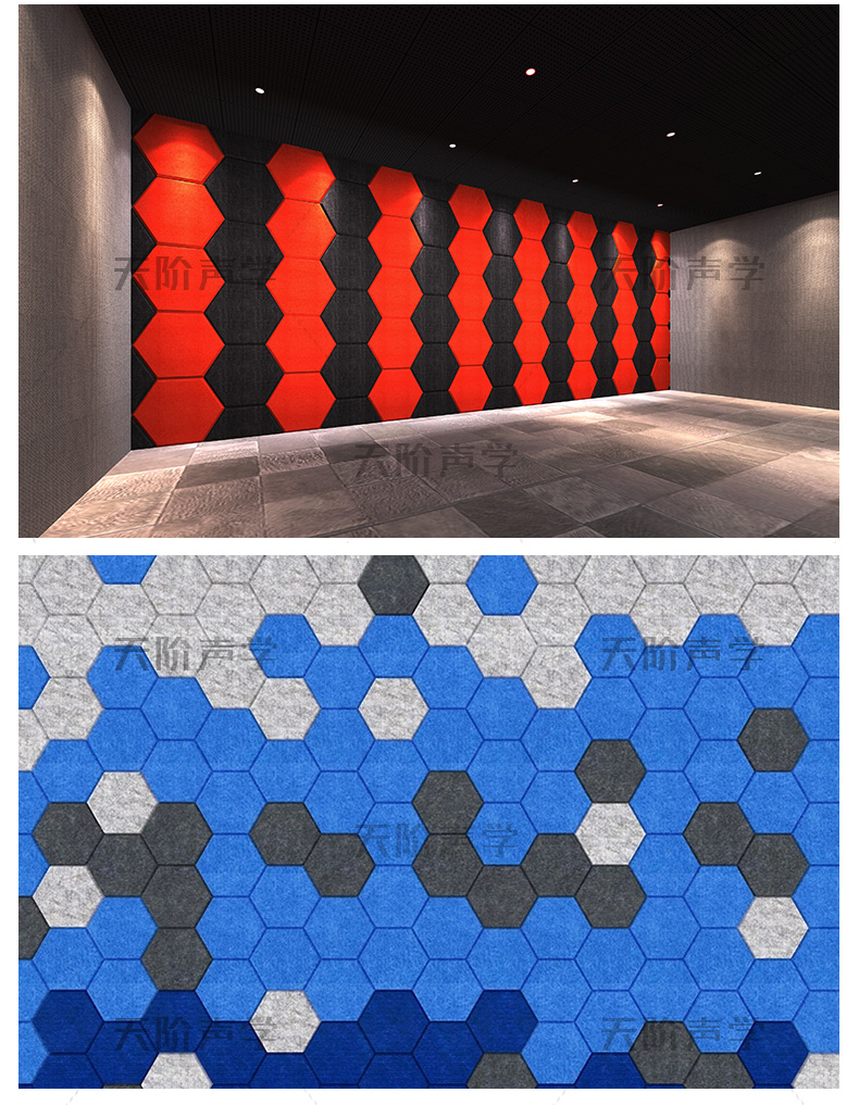 您現(xiàn)在的位置首頁 ? 槽木木質(zhì)吸音板 - 軟包 - 防火吸音板 - 聲學(xué)產(chǎn)品 ? 聚酯纖維吸音板會議室六邊形聚酯纖維吸音板