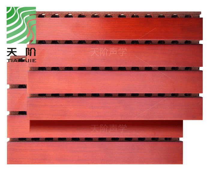 天階聲學(xué)材料廠生產(chǎn)的此種天階槽木吸音板由一系列彼此等槽距條組成,通過對(duì)槽背面孔徑的大小,深淺,正面槽的寬度,深度以及穿孔率進(jìn)行嚴(yán)格的核算,從而在不同的頻率上取得理想的吸聲效果,有效控制聲波的反射和擴(kuò)散,消散雜波和噪音,令室骨有合理的混響時(shí)間,達(dá)到締造音質(zhì)的吸音效果。